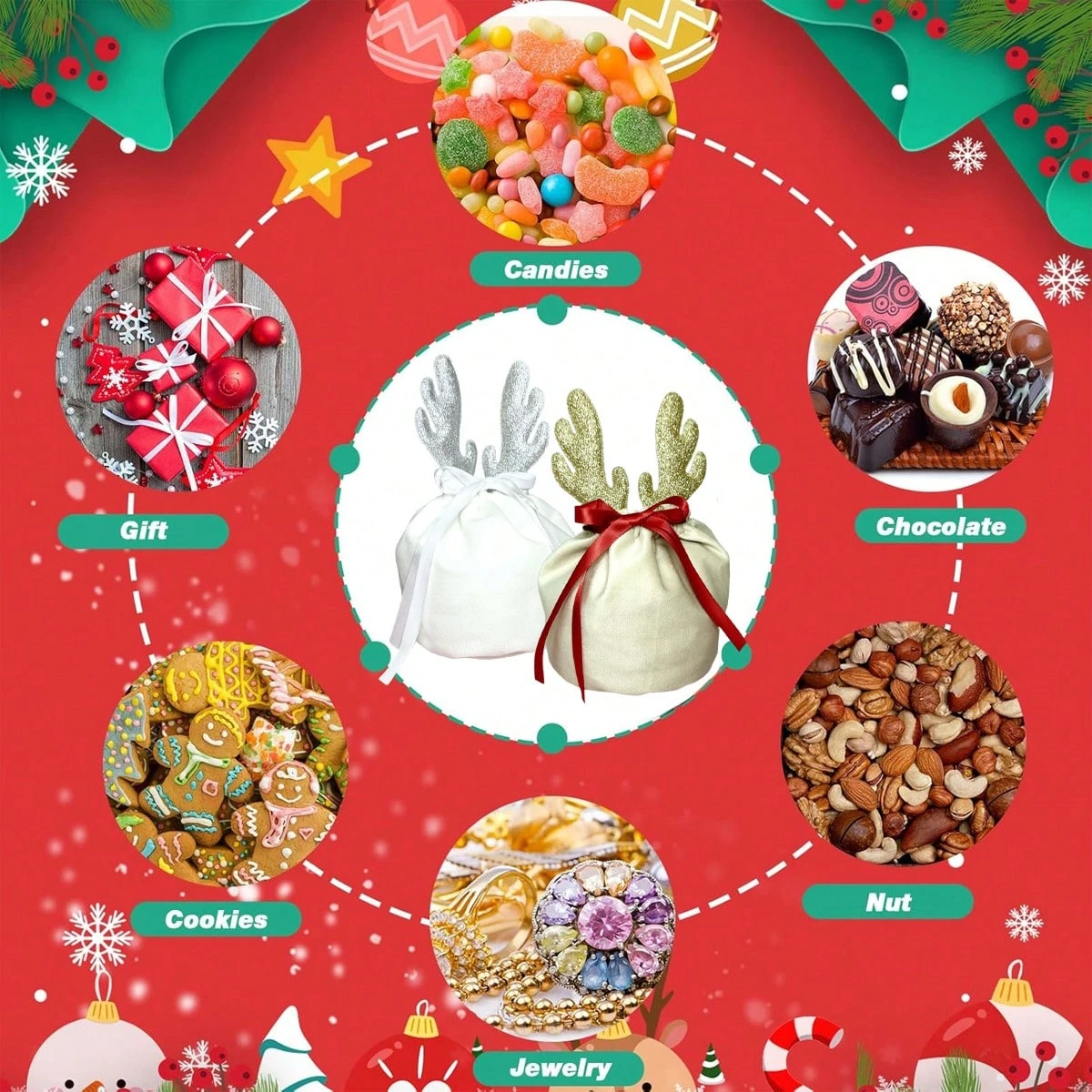 5 Pcs Christmas Gift Pouch Christmas Velvet Drawstring Bag Christmas Treat Bags With Drawstring Christmas Drawstring Wrapping Bags For Jewelry Xmas Party Supplies